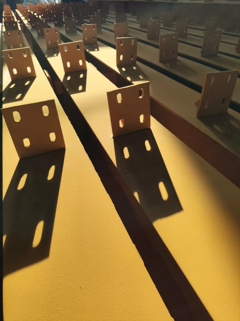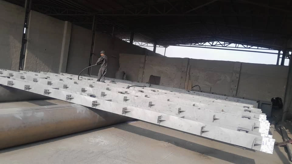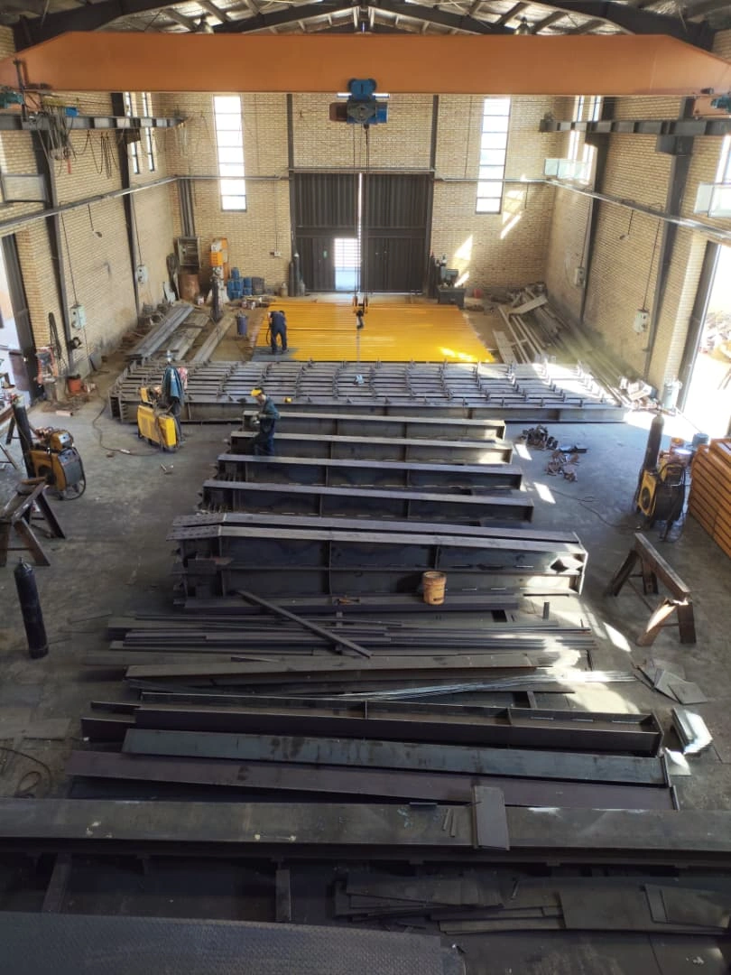 در ادامه اجرای پروژه، نقشههای اجرایی فونداسیون و نقشههای شاپ سازه سوله تهیه و پس از تأیید، عملیات تأمین مصالح شامل ورق، پروفیل و پرلین انجام گردید. سپس مراحل برشکاری، ساخت، جوشکاری و تمیزکاری قطعات فلزی مطابق نقشهها و الزامات فنی اجرا شد. پس از اتمام ساخت هر پارت، بازرسیهای کیفی انجام و عملیات سندبلاست بهمنظور آمادهسازی سطوح صورت پذیرفت. سیستم پوشش شامل یک لایه ضدزنگ آلکیدی و یک لایه رنگ رویه آلکیدی با ضخامت کل ۸۰ میکرون اجرا گردید و پس از رنگآمیزی نیز بازرسی نهایی هر پارت انجام شد.