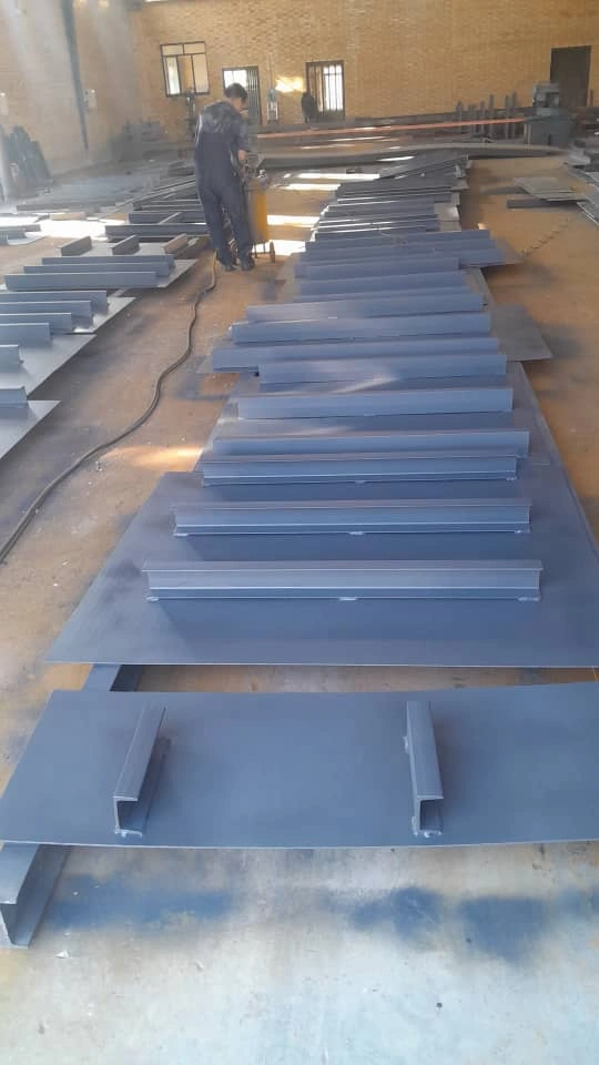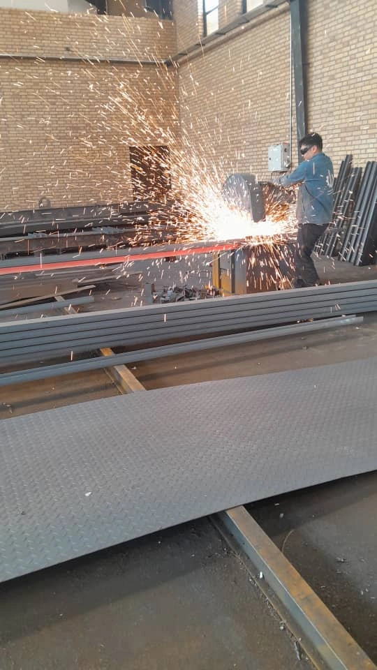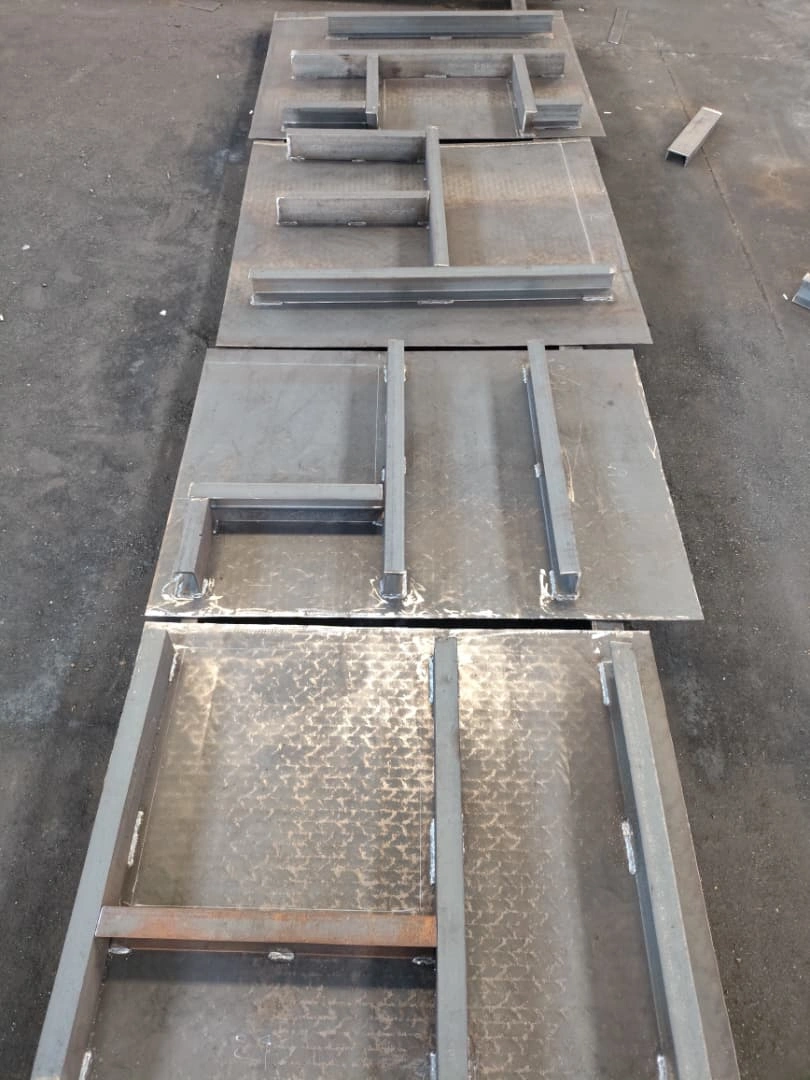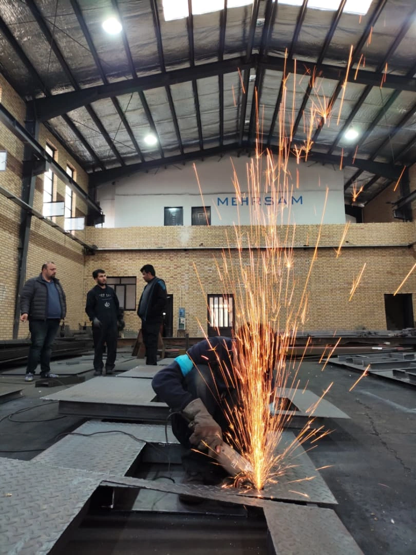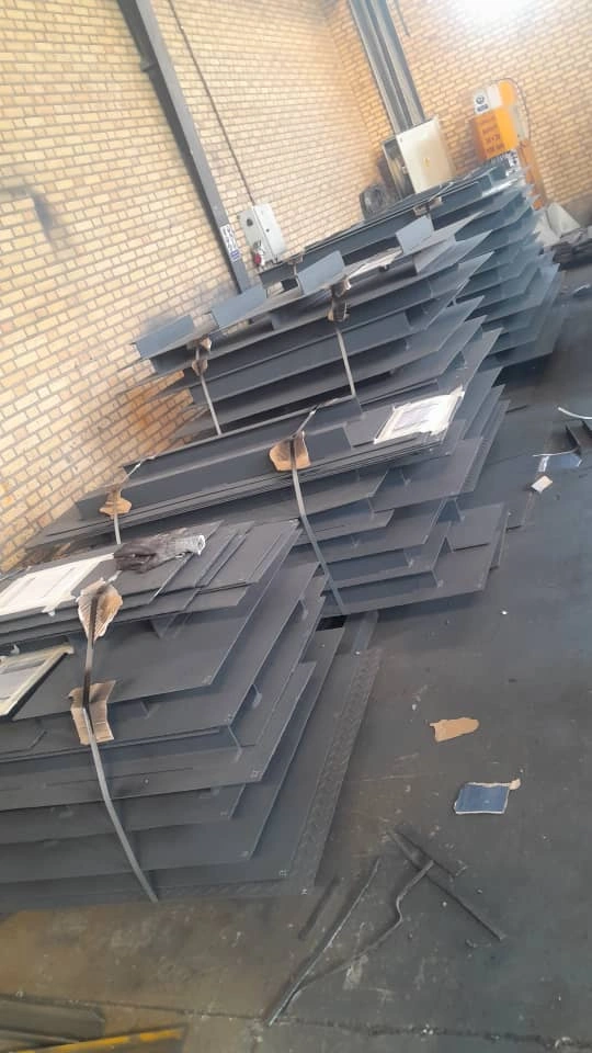 در این پروژه، پس از اتمام ساخت هر پارت و همچنین پس از اجرای رنگ، عملیات بازرسی کیفی مطابق الزامات فنی و اجرایی صورت گرفت تا از انطباق قطعات با نقشهها و مشخصات فنی اطمینان حاصل شود. با توجه به احتمال آسیبدیدگی پوشش رنگ در سطح فوقانی ورقهای چکرپلیت کف طبقات در زمان نصب ماشینآلات، قطعات ساختهشده ابتدا صرفاً با دو لایه رنگ در بخش زیرین ساخته و ارسال شدند. اجرای دو لایه رنگ نهایی در سطح فوقانی پس از نصب کامل ماشینآلات انجام شد تا کیفیت نهایی پوشش رنگ حفظ گردد.